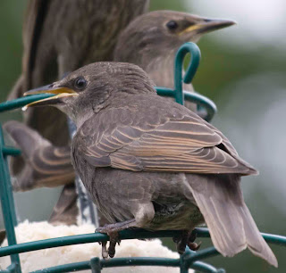It is rare to see a single Starling and should one individual alight on a feeder and start pecking busily at the food it is soon joined by legions of friends and relatives. Generally they arrive and leave as one screeching unit.